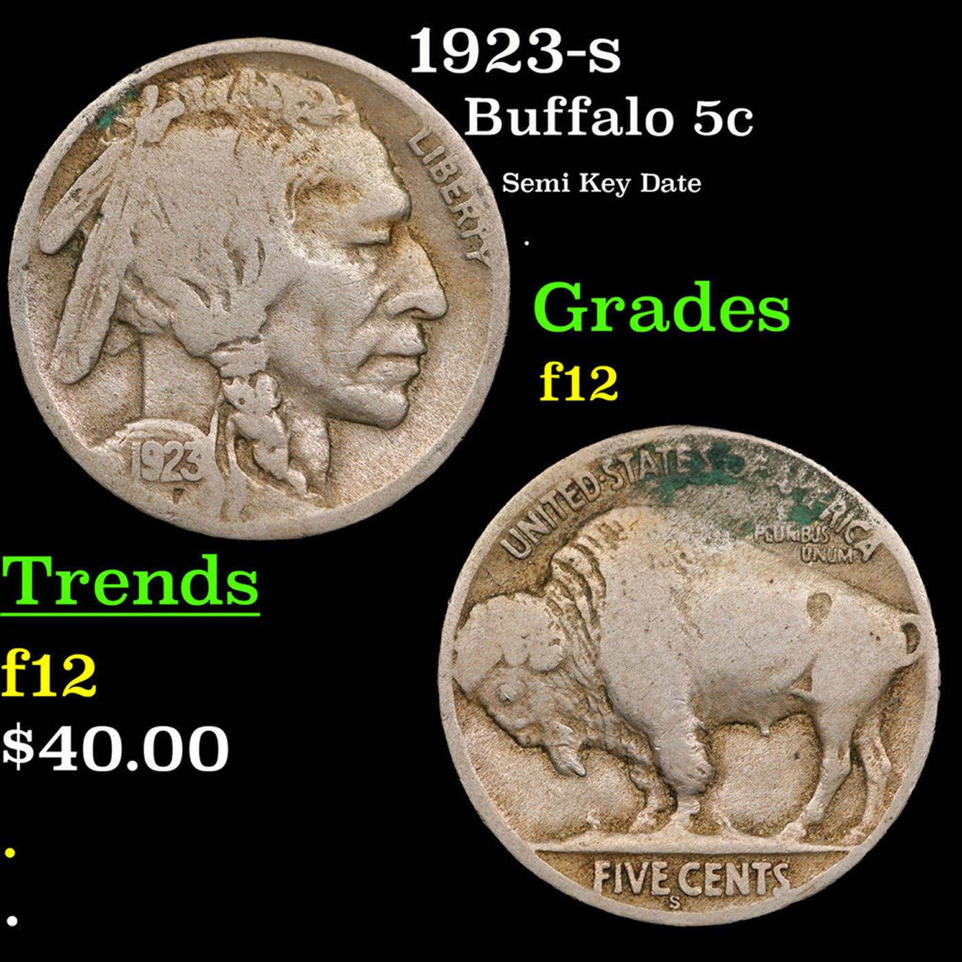 1923-s Buffalo Nickel 5c Grades f, fine.