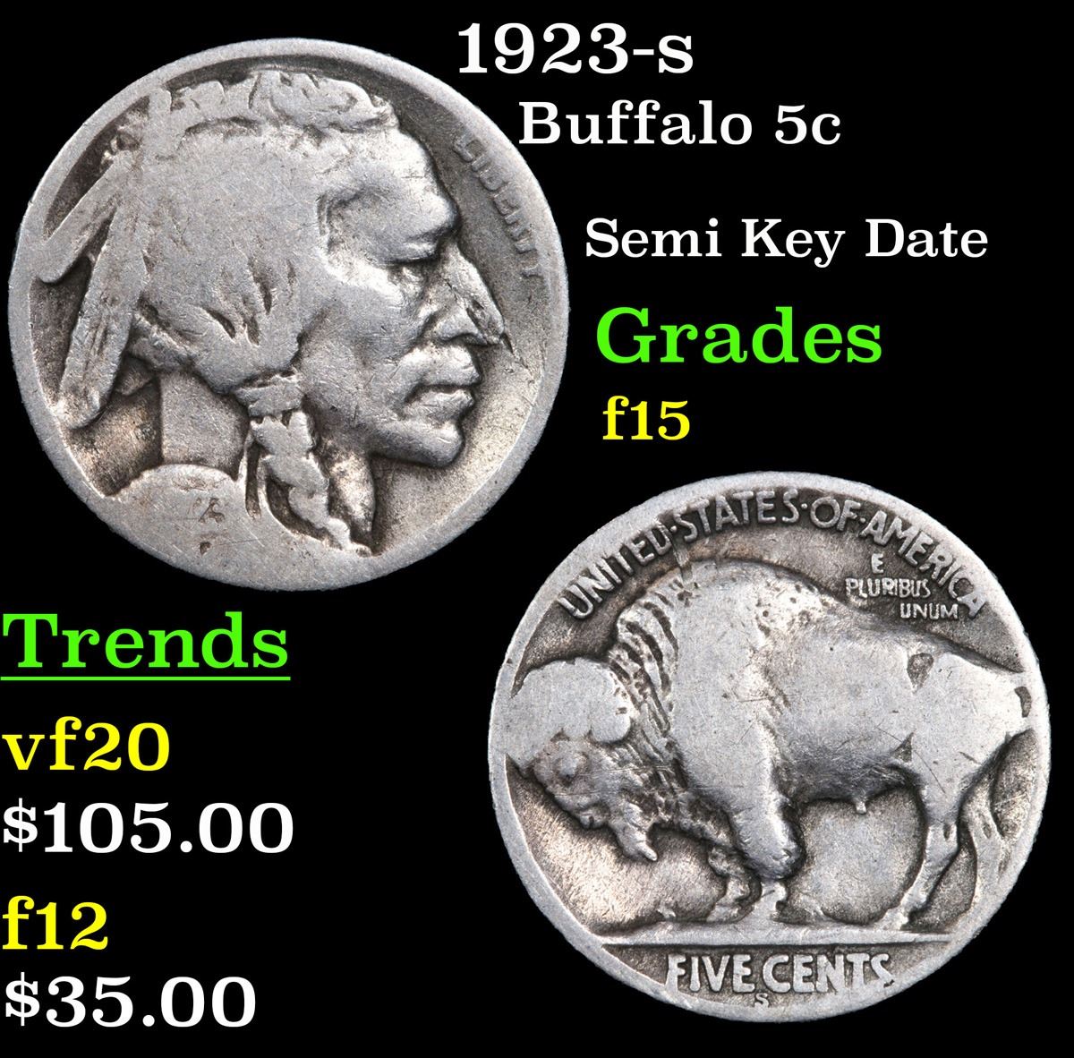 1923-s Semi Key Date . Buffalo Nickel 5c Grades f+.