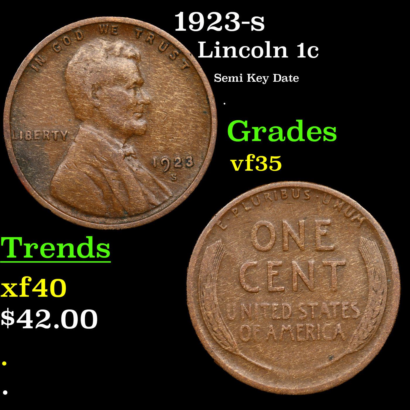 1923-s Lincoln Cent 1c Grades vf++.