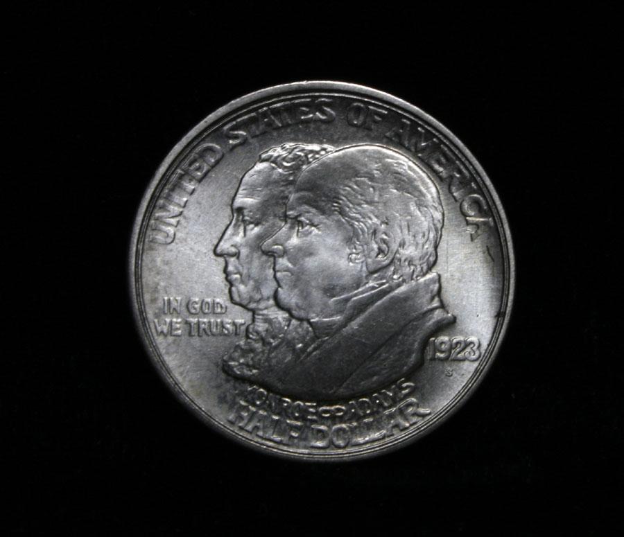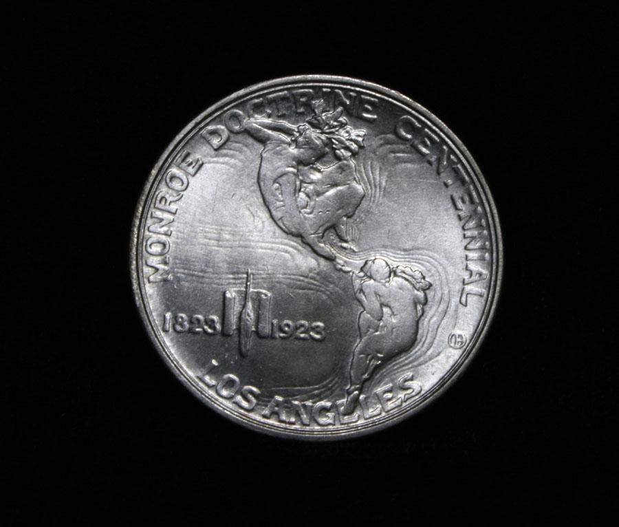 Nice eye appeal, but I believe it has altered surfaces, hence the net grade. One may think that the reverse is the two continents of The western Hemisphere but upon closer examination you will see that they are two women bent into the general shapes of the two continents. When examining a Monroe Commemorative the cheeks of the two statesmen on the obverse and the figures that represent the two continents on the reverse are the highpoints and will show wear first. .This coin has a planchet flaw of the reverse which turns into a crack at the rim. It does not reduce the grade as it is not wear but a Planchet Flaw, some may even say it increases rarity and value. Coin World's Coin Values lists au50 at $65 and ms60 at $85 and The Wholesale Greysheet lists au50 at $46 and ms60 at $60. Estimated Value $50