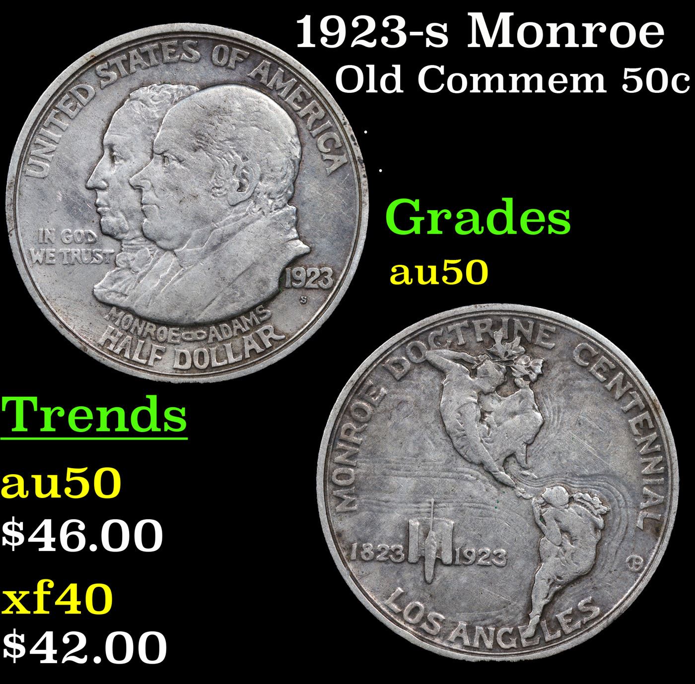 1923-s Monroe Old Commem Half Dollar 50c Grades AU, Almost Unc