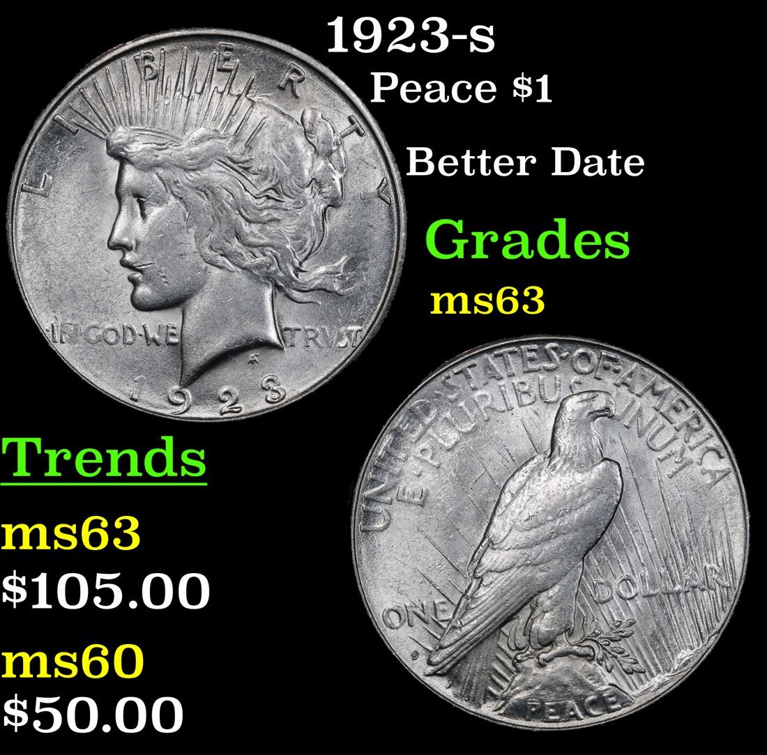 1923-s Better Date . Peace Dollar $1 Grades Select Unc.
