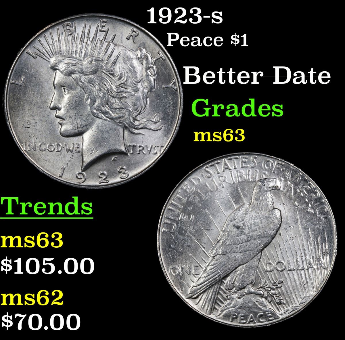 1923-s Peace Dollar $1 Grades Select Unc.