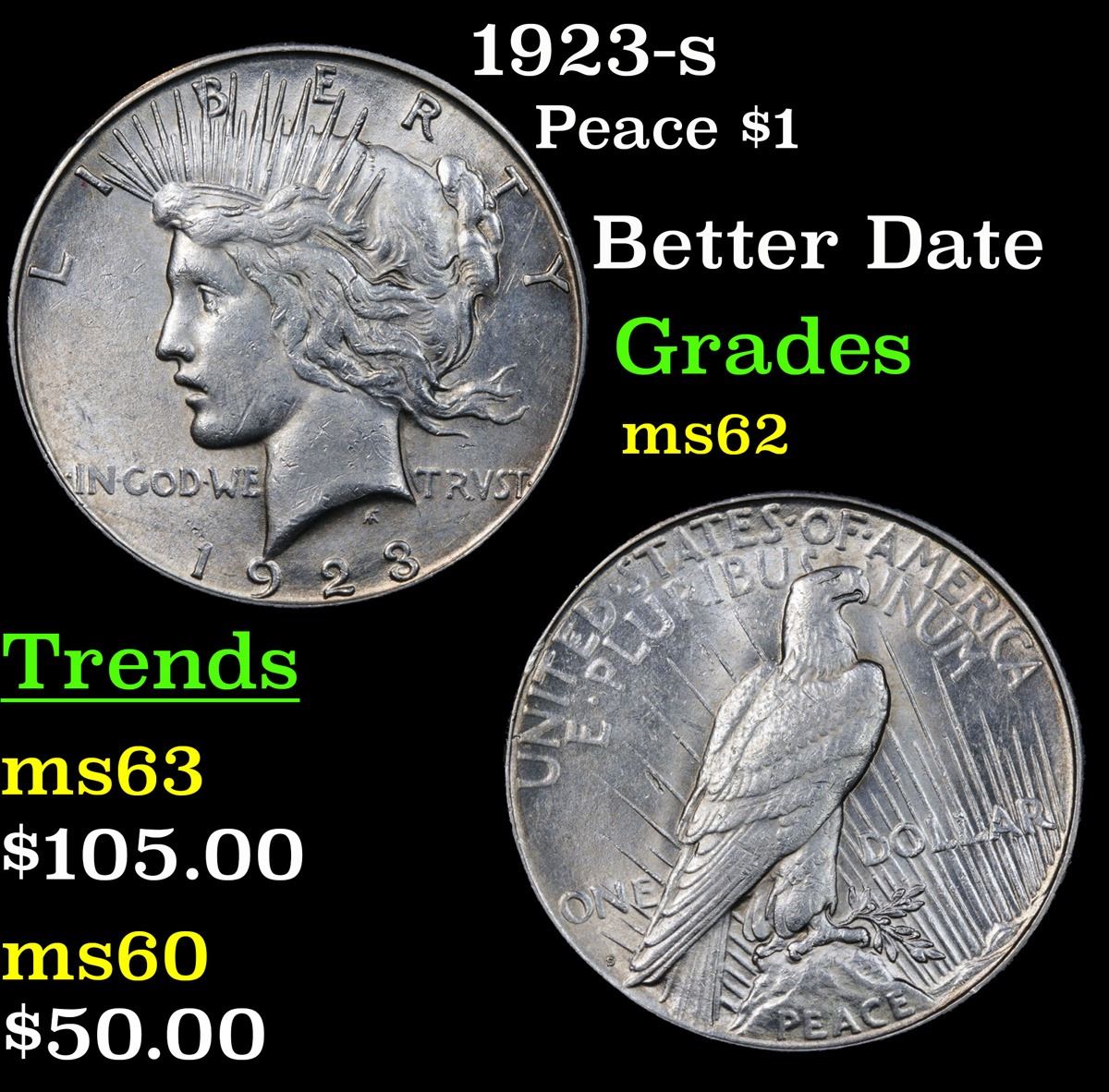 1923-s Peace Dollar $1 Grades Select Unc.