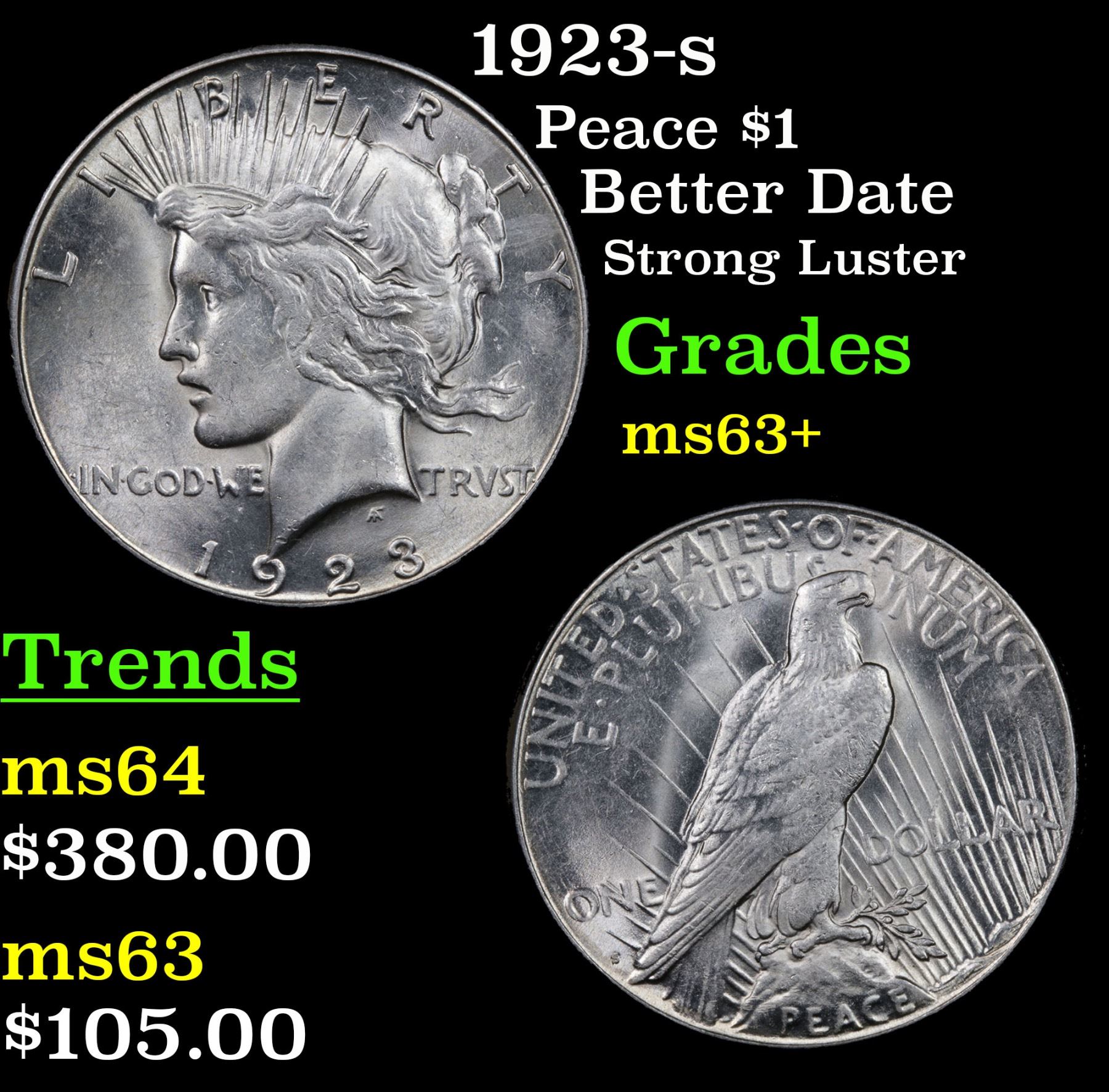 1923-s Peace Dollar $1 Grades Select+ Unc.