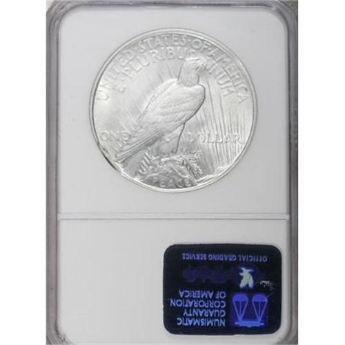 <B>1924 $1 Peace Dollar--Curved Clip at10:00--AU58 NGC.</B></I> NGC Census: (64/23867). PCGS Population (182/16890). Mintage: 11,811,000. Numismedia Wsl. Price for NGC/PCGS coin in AU58: $14. (#7363)<BR><BR><B>Coin Engraver:</B> Anthony de Francisci<BR><BR><b>Shipping:</b> Coins & Currency (<a target="_blank" href="http://www.heritageauctions.com/common/shipping.php">view shipping information</a>)