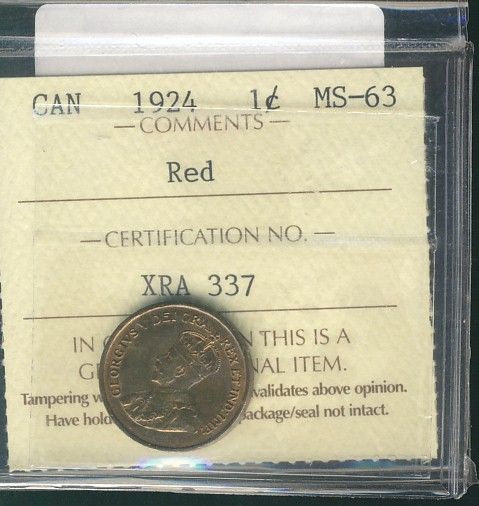 1924 1¢ ICCS MS63RD. Key date issue 75% red.