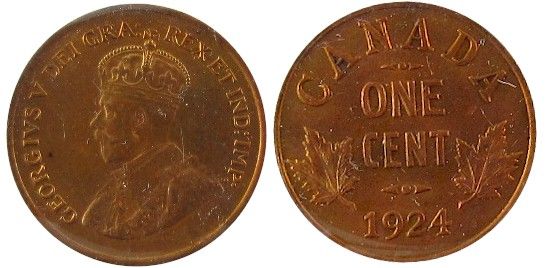 1924 1¢ ICCS MS65. Wow example. Original with full red mint lustre. Well struck with exceptional surfaces and clean fields.The best of the best. An absolute gem of a coin. The nicest example ever graded by ICCS and handled by the cataloguer. Worth a premium bid.