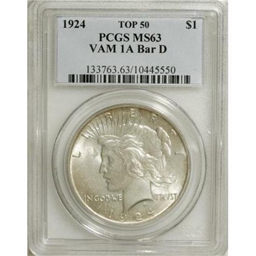 <B>1924 $1 MS63 PCGS.</B></I> VAM 1A, Bar D, Top 50. PCGS Population (3/2). NGC Census: (0/0). (#133763)<BR><BR><b>Shipping:</b> Coins & Currency (<a target="_blank" href="http://www.heritageauctions.com/common/shipping.php">view shipping information</a>)