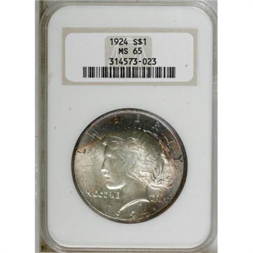 <B>1924 $1 MS65 NGC.</B></I> NGC Census: (5423/929). PCGS Population (2206/457). Mintage: 11,811,000. Numismedia Wsl. Price for NGC/PCGS coin in MS65: $150. (#7363)<BR><BR><B>Coin Engraver:</B> Anthony de Francisci<BR><BR><b>Shipping:</b> Coins & Currency (<a target="_blank" href="http://www.heritageauctions.com/common/shipping.php">view shipping information</a>)