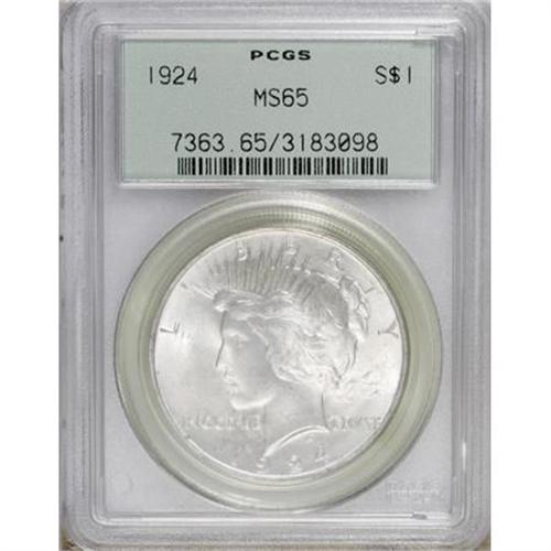 <B>1924 $1 MS65 PCGS.</B></I> PCGS Population (2202/456). NGC Census: (5420/928). Mintage: 11,811,000. Numismedia Wsl. Price for NGC/PCGS coin in MS65: $150. (#7363)<BR><BR><B>Coin Engraver:</B> Anthony de Francisci<BR><BR><b>Shipping:</b> Coins & Currency (<a target="_blank" href="http://www.heritageauctions.com/common/shipping.php">view shipping information</a>)