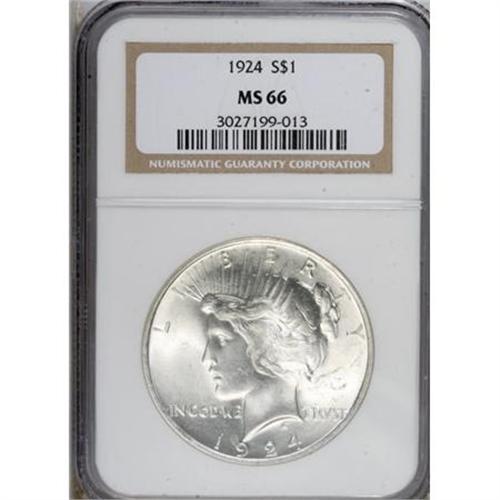 <B>1924 $1 MS66 NGC.</B></I> NGC Census: (854/60). PCGS Population (434/22). Mintage: 11,811,000. Numismedia Wsl. Price for NGC/PCGS coin in MS66: $610. (#7363)<BR><BR><B>Coin Engraver:</B> Anthony de Francisci<BR><BR><b>Shipping:</b> Coins & Currency (<a target="_blank" href="http://www.heritageauctions.com/common/shipping.php">view shipping information</a>)