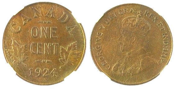 1924 1¢ NGC MS65 BN, nice lustre with lovely surfaces. Key date.
