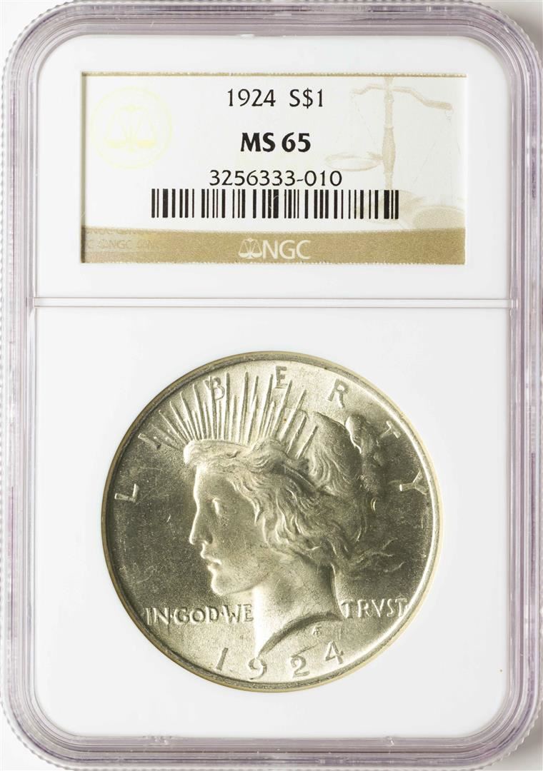 One 1924 $1 Peace Silver Dollar Coin NGC MS65. NGC Certified.