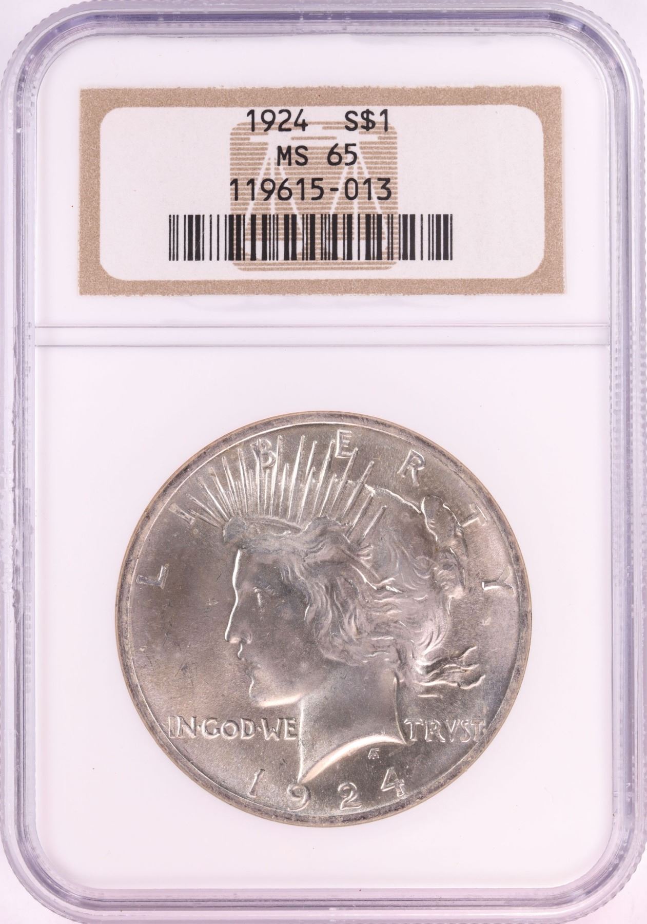 One 1924 $1 Peace Silver Dollar Coin NGC MS65.