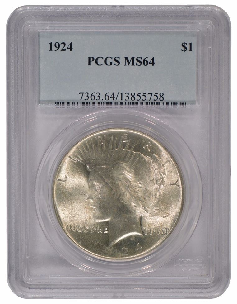 One 1924 $1 Peace Silver Dollar Coin PCGS MS64.