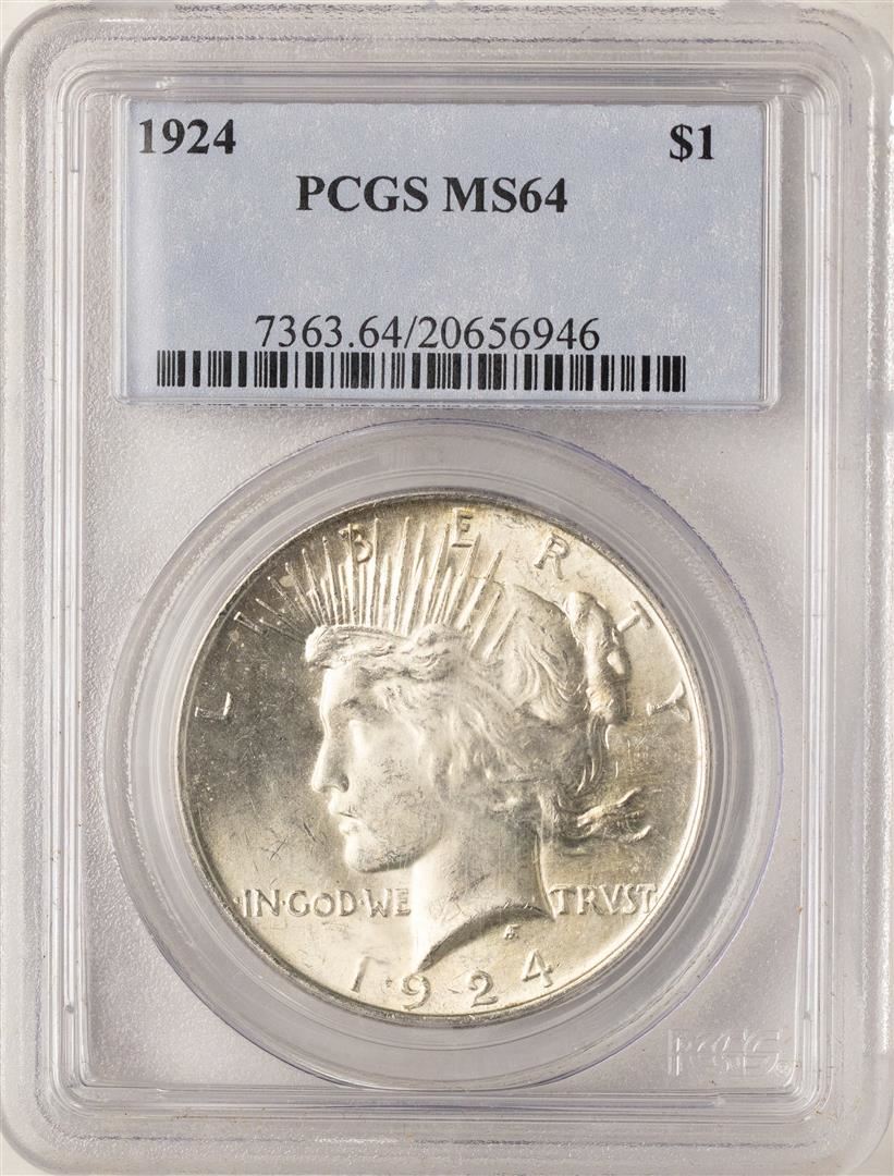 One 1924 $1 Peace Silver Dollar Coin PCGS MS64. PCGS Graded.