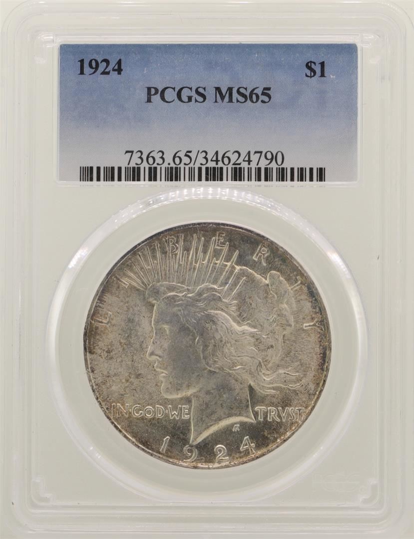 One 1924 $1 Peace Silver Dollar Coin PCGS MS65. PCGS Graded.
