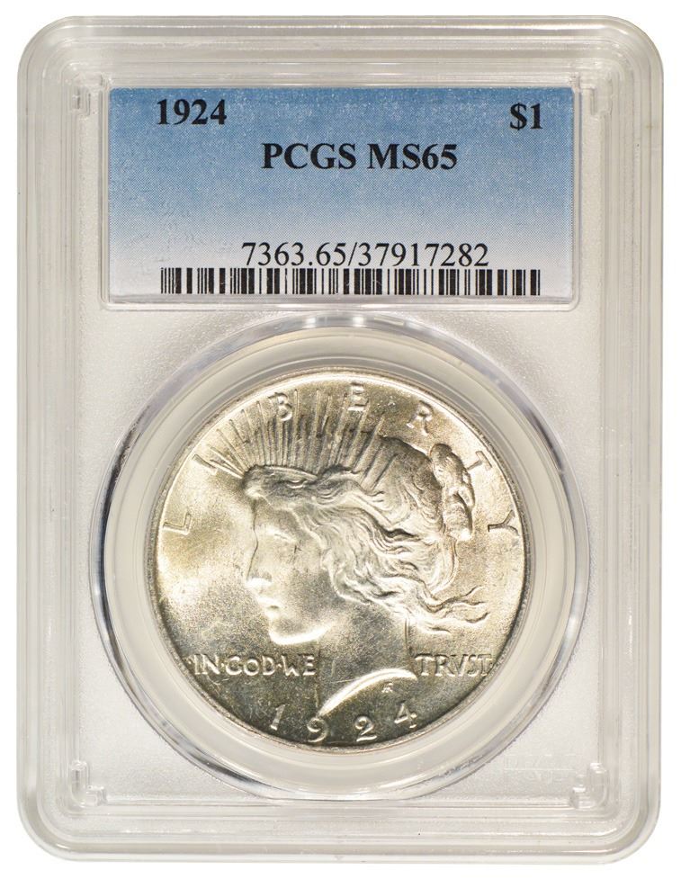 One 1924 $1 Peace Silver Dollar Coin PCGS MS65.