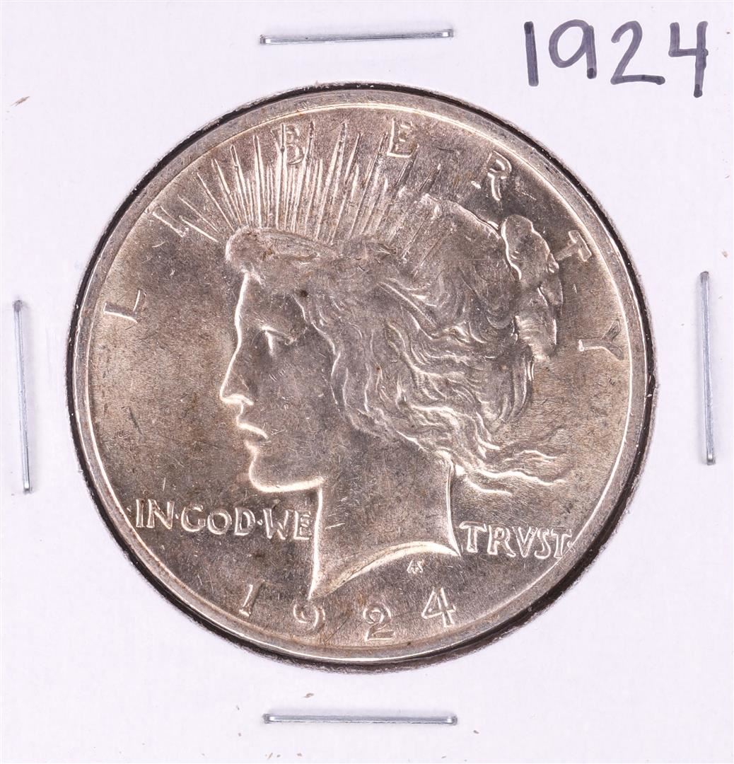 One 1924 $1 Peace Silver Dollar Coin.