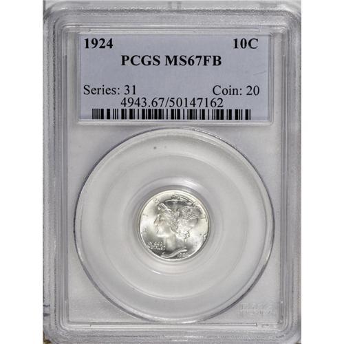 <B>1924 10C MS67 Full Bands PCGS.</B></I> This brilliant Superb Gem has bright, flashy cartwheel luster and needle-sharp definition in the centers. The borders have only a trace of fadeaway, which is common to the issue. A beautifully preserved piece that will never require an upgrade. Population: 11 in 67, 0 finer (10/06).<BR><BR><b>Shipping:</b> Coin/Currency (<a target="_blank" href="http://www.heritageauctions.com/common/shipping.php">view shipping information</a>)