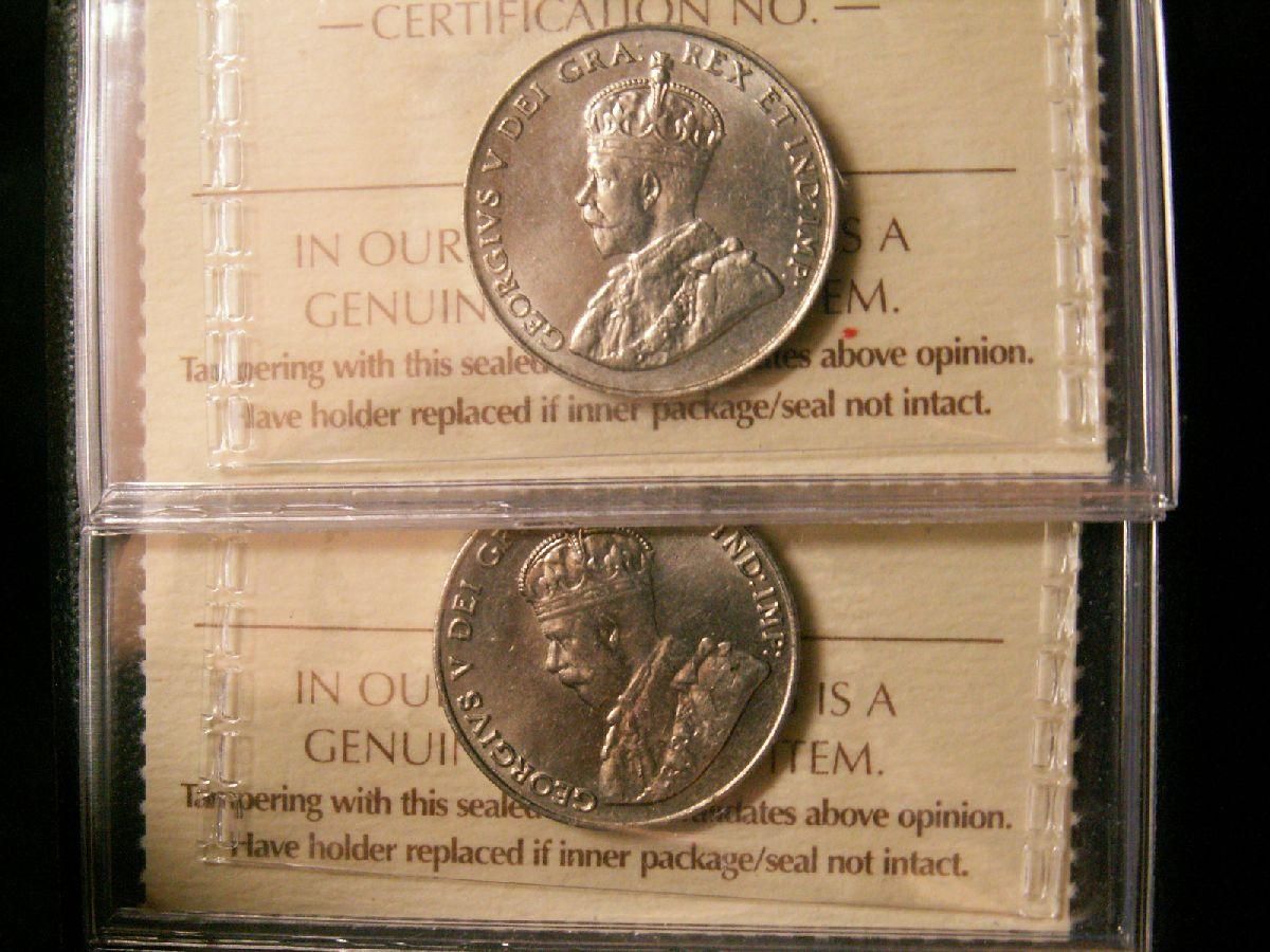 1924 & 1927 5¢ ICCS MS60. Lot of 2 coins.