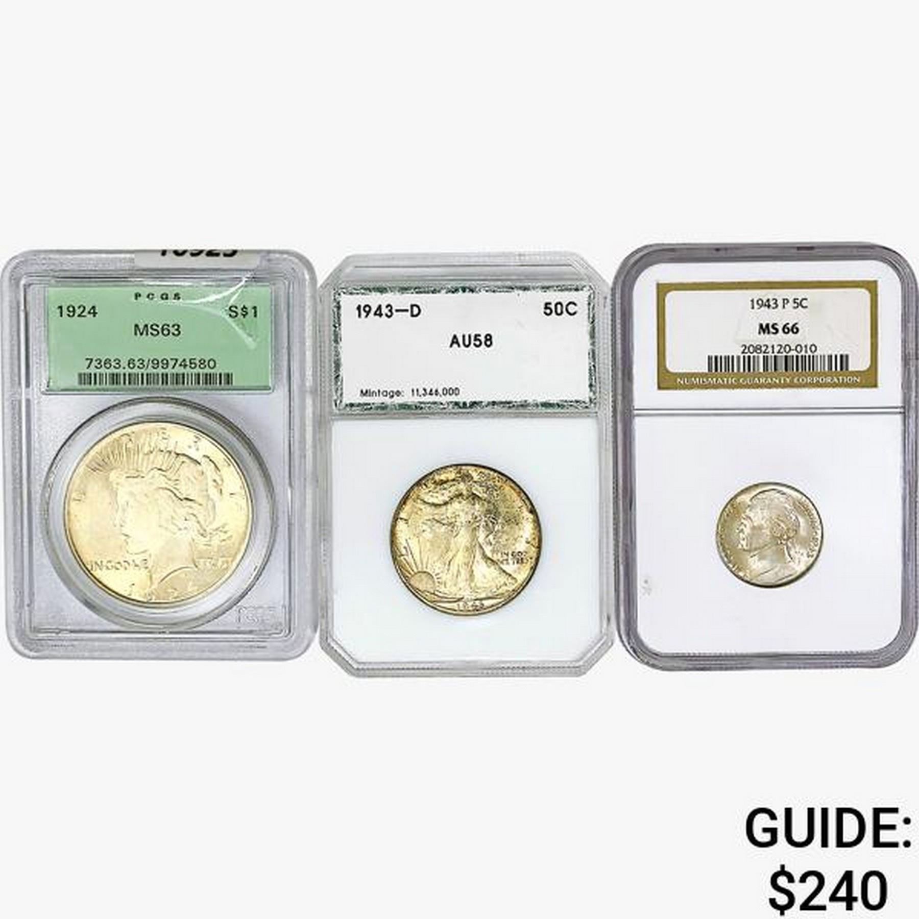 1924&1943 [3] US Varied Silver Coinage AU/MS