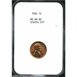 1924 1C MS66 Red NGC. This is a crisp, fully lustrous Gem with essentially no surface distraction...