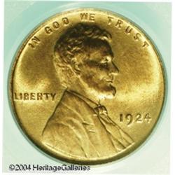 1924 1C MS66 Red PCGS. A marvelous fully red Gem, <B>1924 1C MS66 Red PCGS.</B></I> A marvelous fully red Gem, essentially pristine on the obverse. The reverse shows a couple of small contact marks, and two or three minuscule carbon spots. Population: 58 in 66, 3 finer (10/04). <BR><BR><B>Important notice:</B> Heritage usually auctions material at the rate of 200-250 lots per hour. On some occasions eBay Live bid software or the Internet may not be able to keep up with the pace of the auction. We recommend placing a realistic absentee bid now as insurance to avoid disappointment. Occasionally the auctioneer may eliminate or reject an eBay Live bid, and the auctioneer may also reopen a lot after the close of the eBay live bidding (usually because we missed an audience bid), and may reject your bid even if it shows you as the winning bidder. By bidding via eBay Live, you agree that Heritage may award the lot to another bidder at its sole discretion under the circumstances described above or any other reasonable circumstances. Since eBay bids are not shown to us until we open the lot on the floor, we treat those bids just like floor bids. In most cases the floor responds before the eBay bid is presented to us, due to Internet lag time, so for consistency we have made it a policy that floor bids are always considered first over tie eBay live bids. Also please note that all Heritage lots purchased through eBay Live carry a 20% Buyer's Premium. Please make sure you read the Terms and Conditions before you bid. This lot is being auctioned in conjunction with a live floor auction by Heritage Galleries & Auctioneers. All final auction and invoice information will be supplied by Heritage Galleries & Auctioneers, and all other information should be considered preliminary. Lot:5294