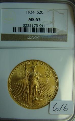 1924 $20.00 St. Gaudens Gold Coin NGC MS 63