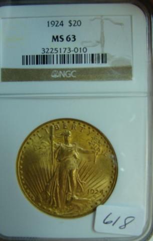 1924 $20.00 St. Gaudens Gold Coin NGC MS 63