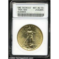1924 $20 --Cleaned--ANACS. UNC Details, Net AU55.