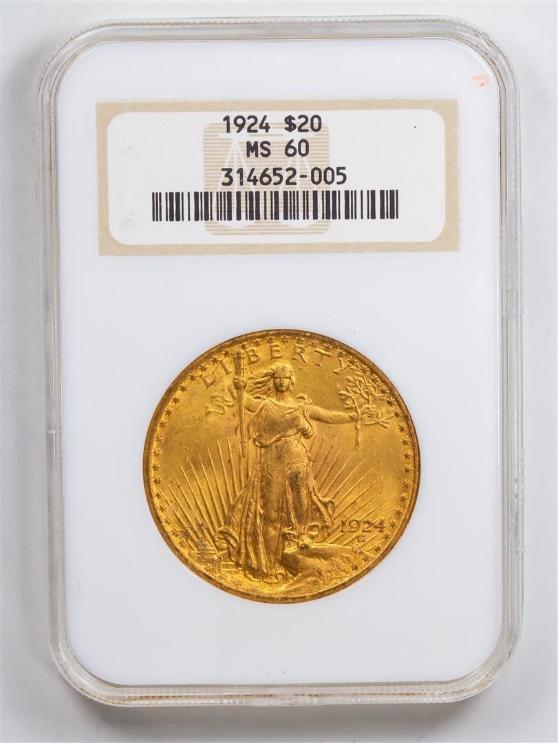 One 1924 $20 Double Eagle Gold Coin NGC MS60.