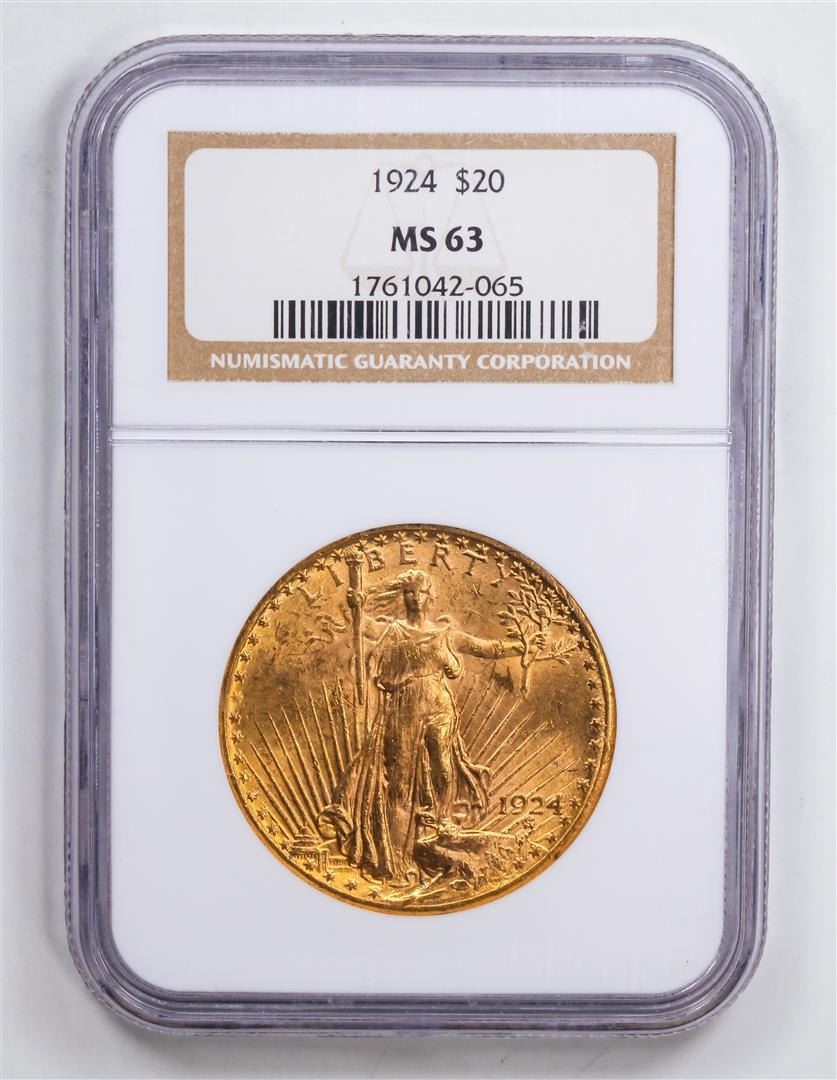 One 1924 $20 Double Eagle Gold Coin NGC MS63.