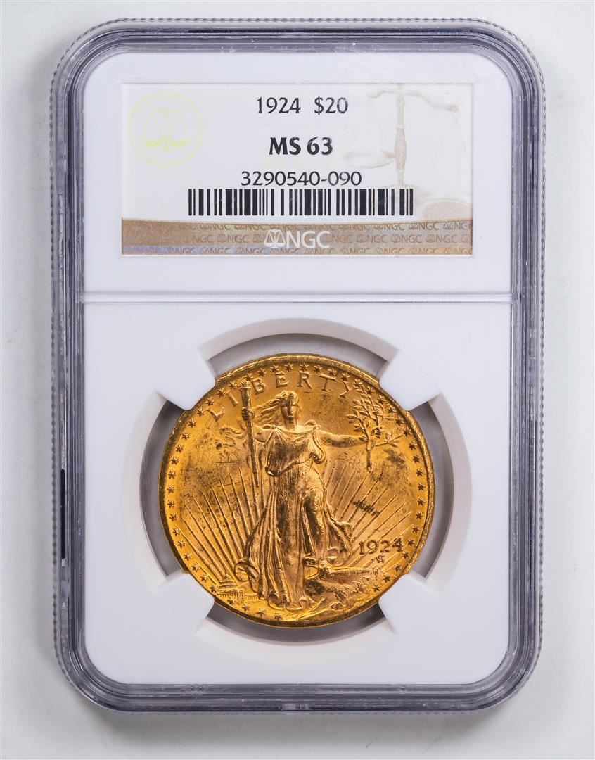 One 1924 $20 Double Eagle Gold Coin NGC MS63.