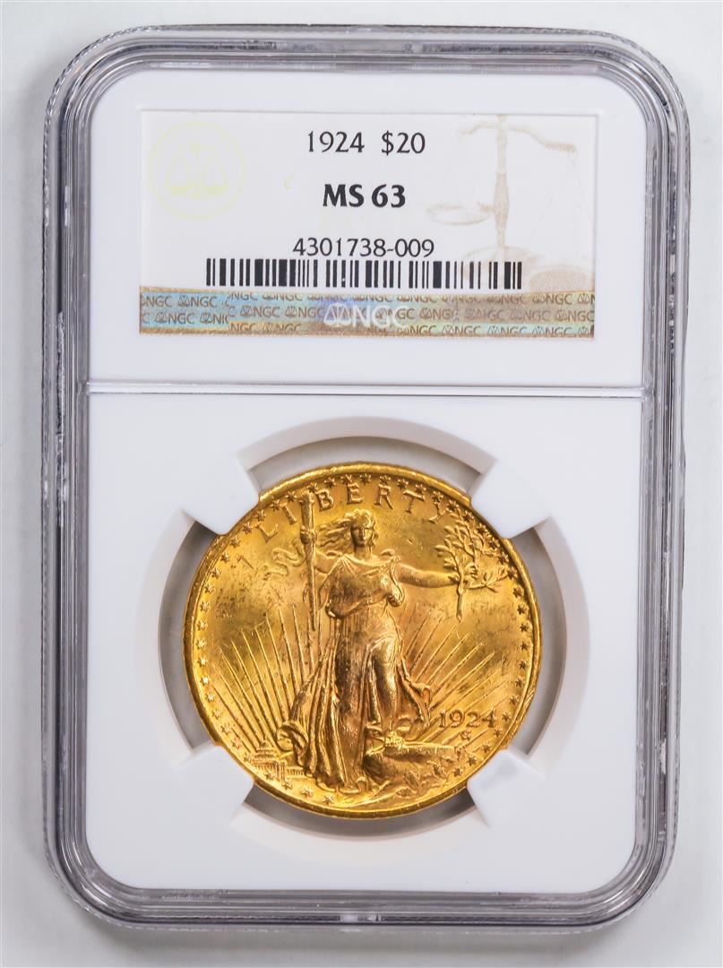 One 1924 $20 Double Eagle Gold Coin NGC MS63.