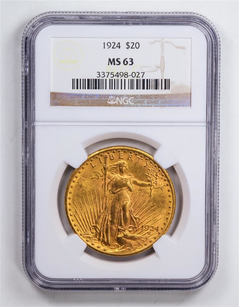 One 1924 $20 Double Eagle Gold Coin NGC MS63.