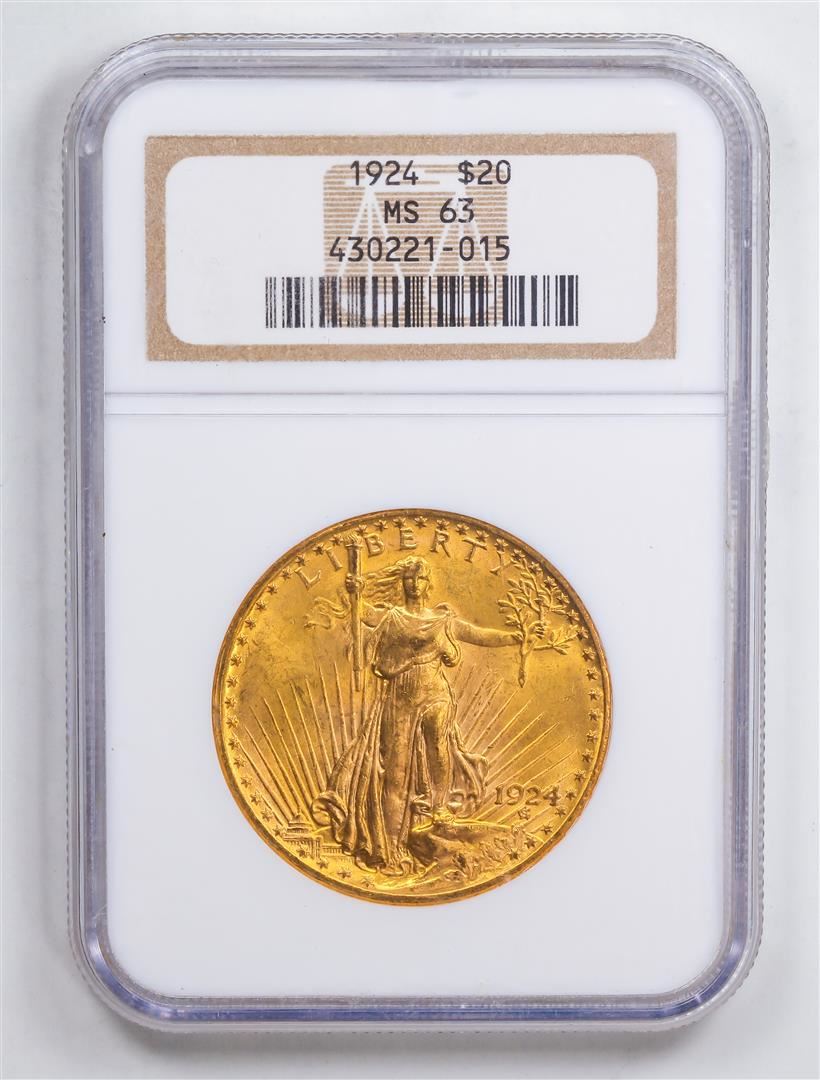 One 1924 $20 Double Eagle Gold Coin NGC MS63.
