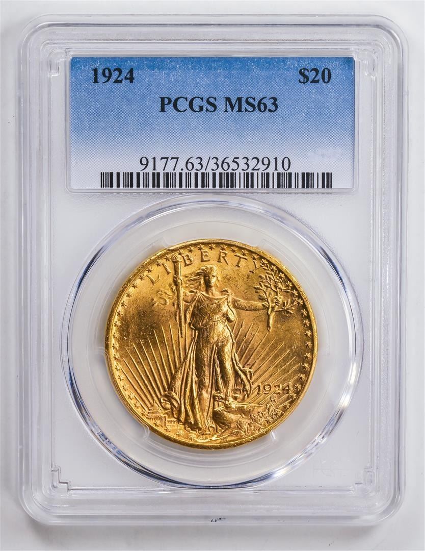 One 1924 $20 Double Eagle Gold Coin PCGS MS63.