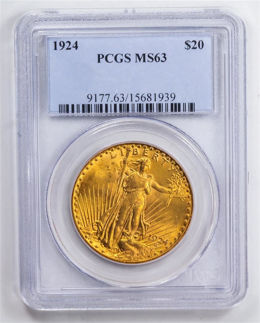 One 1924 $20 Double Eagle Gold Coin PCGS MS63.