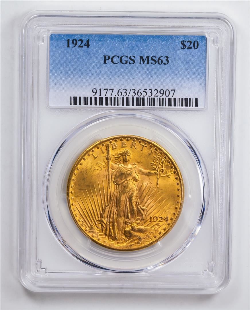One 1924 $20 Double Eagle Gold Coin PCGS MS63.