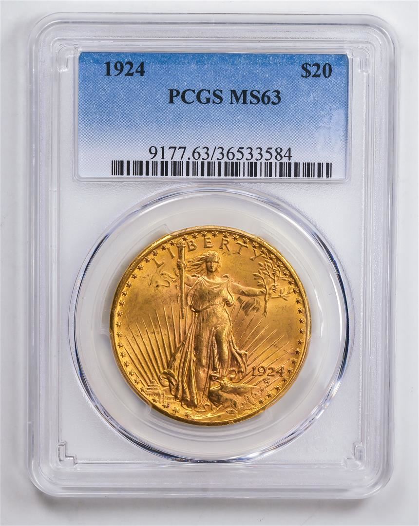 One 1924 $20 Double Eagle Gold Coin PCGS MS63.