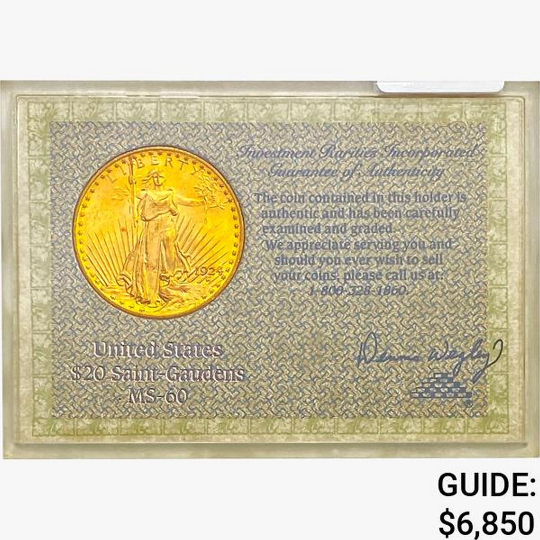 1924 $20 Gold Double Eagle MS60