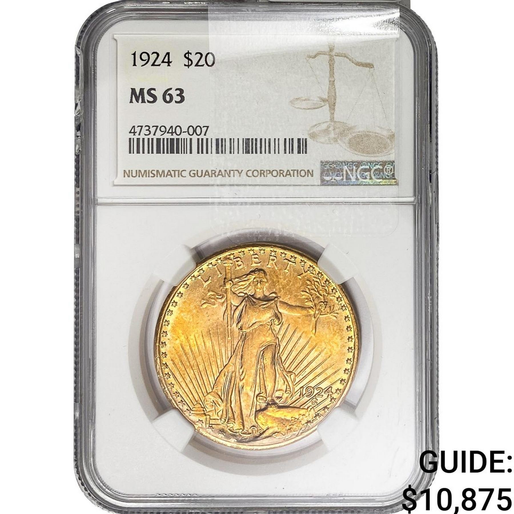 1924 $20 Gold Double Eagle NGC MS63