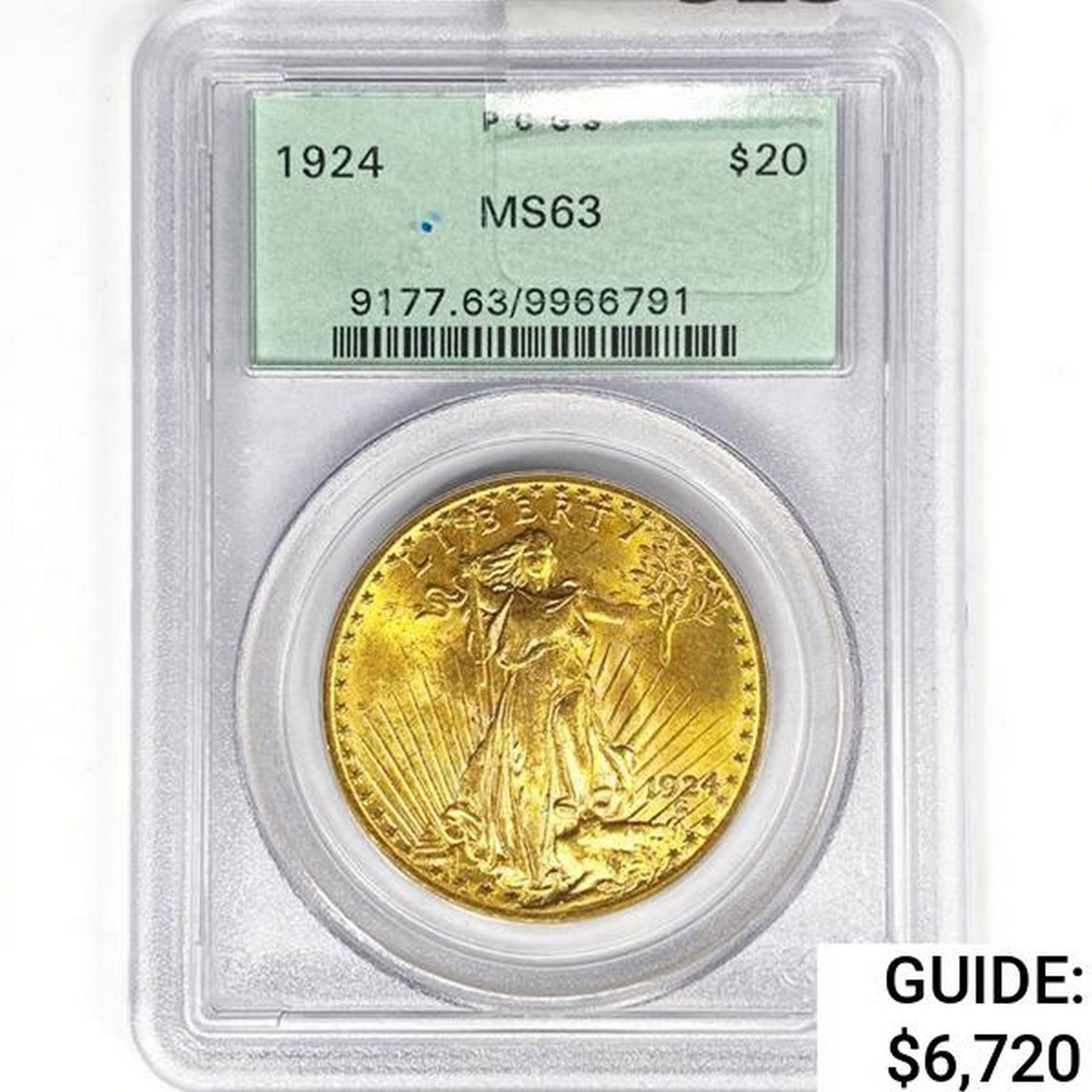 1924 $20 Gold Double Eagle PCGS MS63