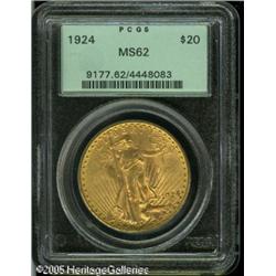 <B>1924 $20 MS62 PCGS.</B></I> Frosty with numerous luster grazes that preclude a finer grade. Lot:9651