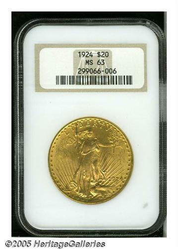 1924 $20 MS63 NGC. Lightly abraded, defining the
