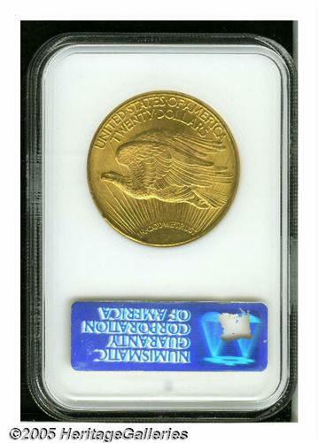 <B>1924<$20> MS63 NGC.</B></I> Lightly abraded, defining the MS63 grade, with sharp design features and attractive light yellow-gold surfaces.
