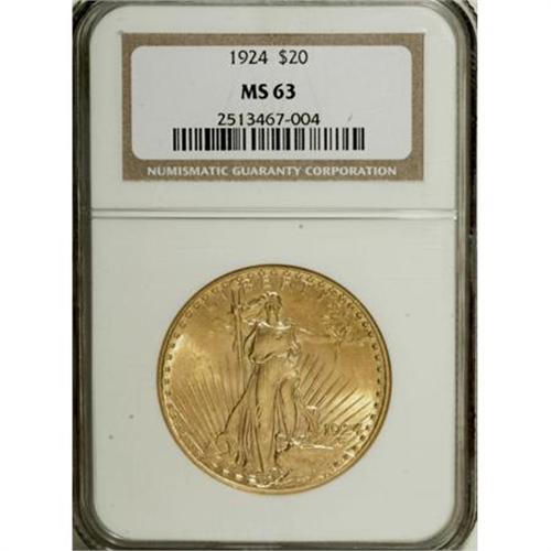 1924 $20 MS63 NGC. NGC Census: (78558/111552). PCG
