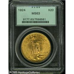 <B>1924 $20 MS63 PCGS.</B></I> Flashy luster presides over the moderately marked surfaces. Lot:9664